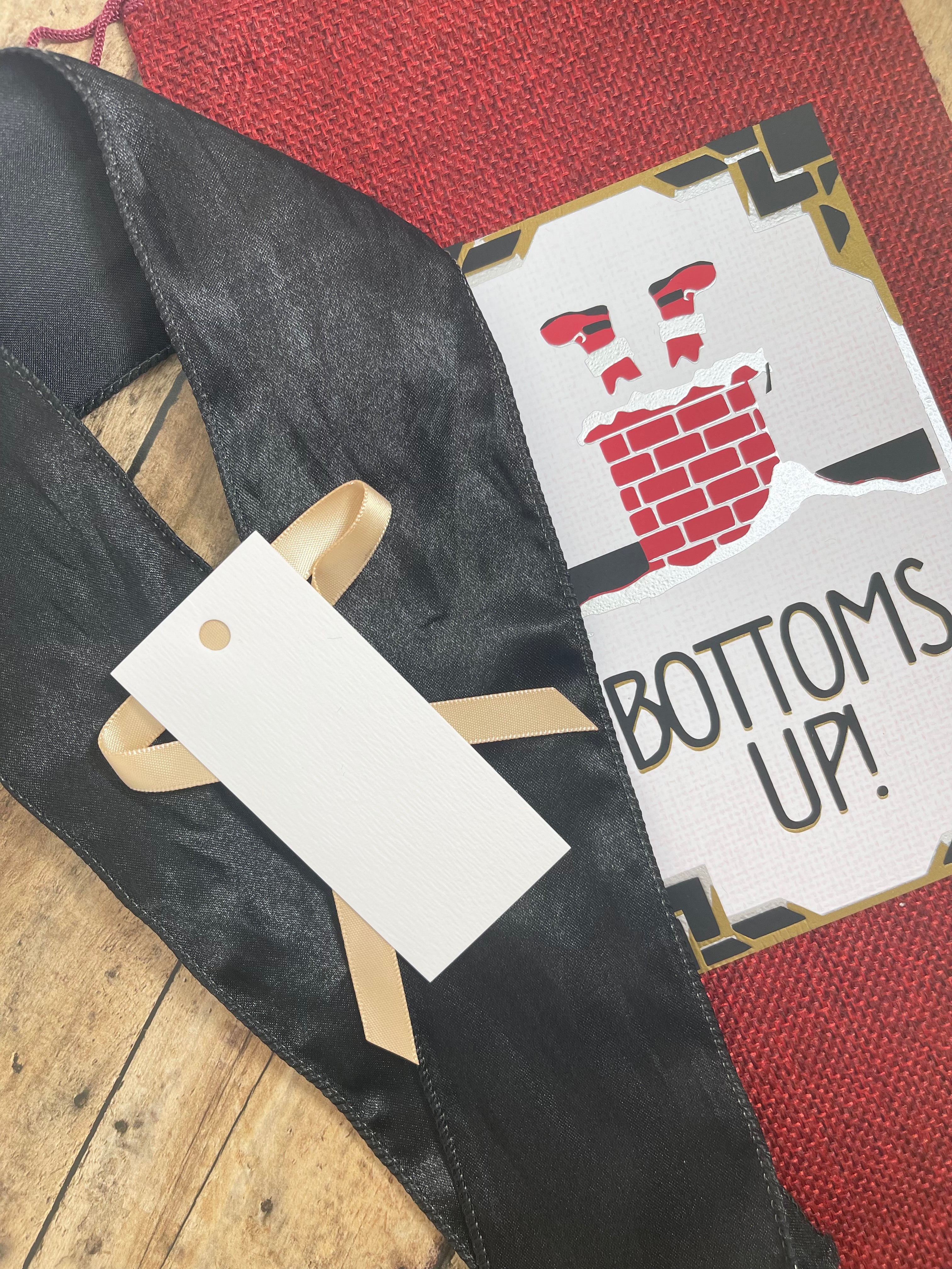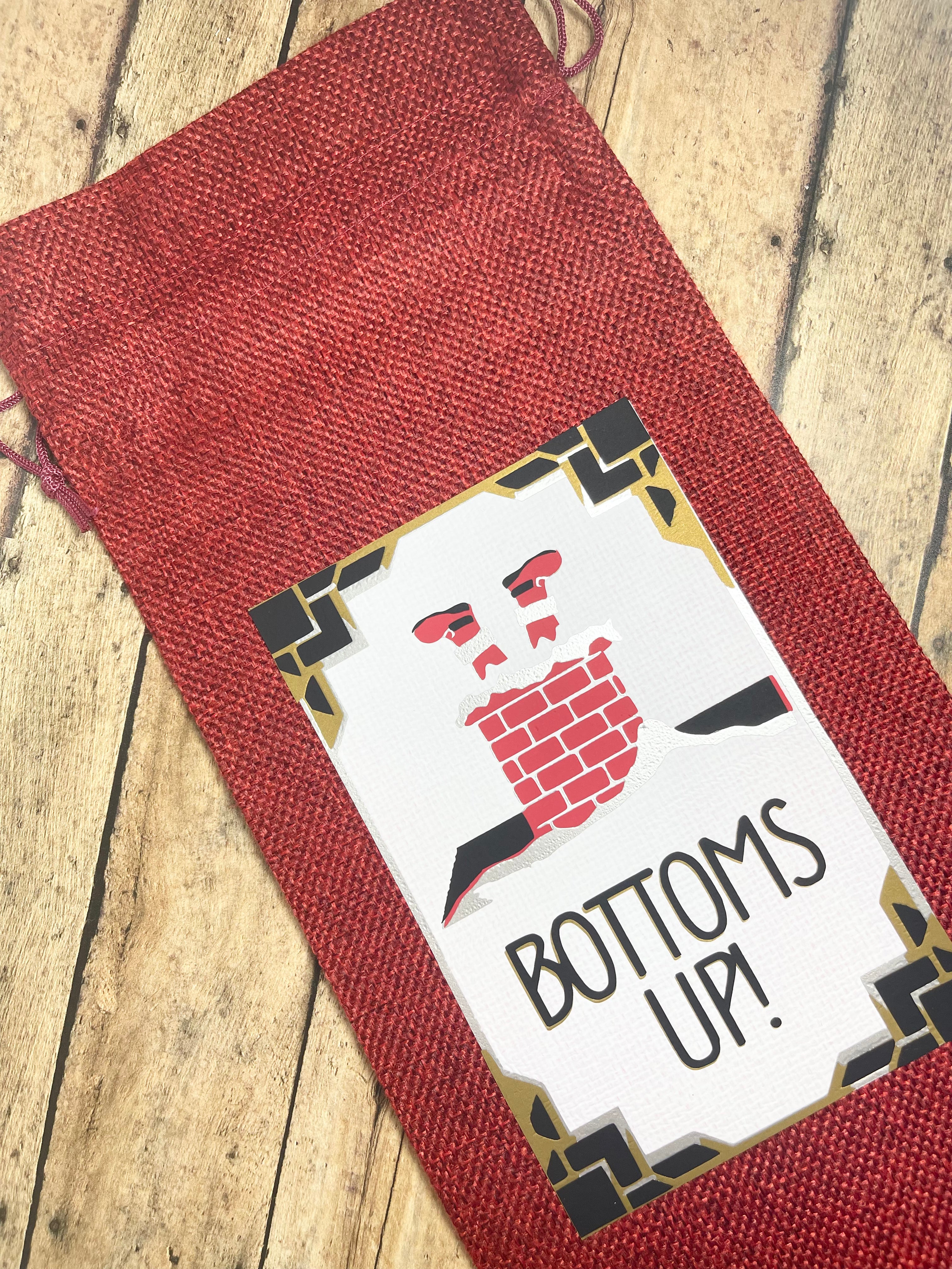 Bottoms Up, Santa in Chimney Wine Bag Gift Set With Ribbon and Gift Tag