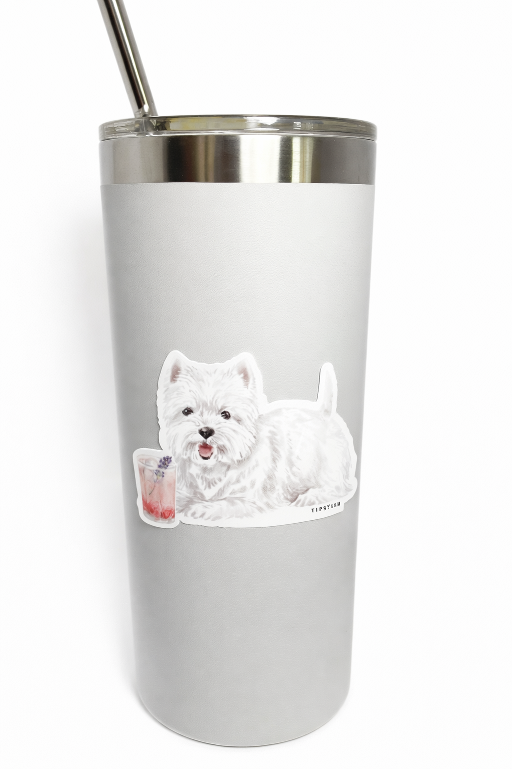 Westie with a Cocktail Vinyl Sticker – Cute Dog Bar Sticker for Pet & Cocktail Lovers